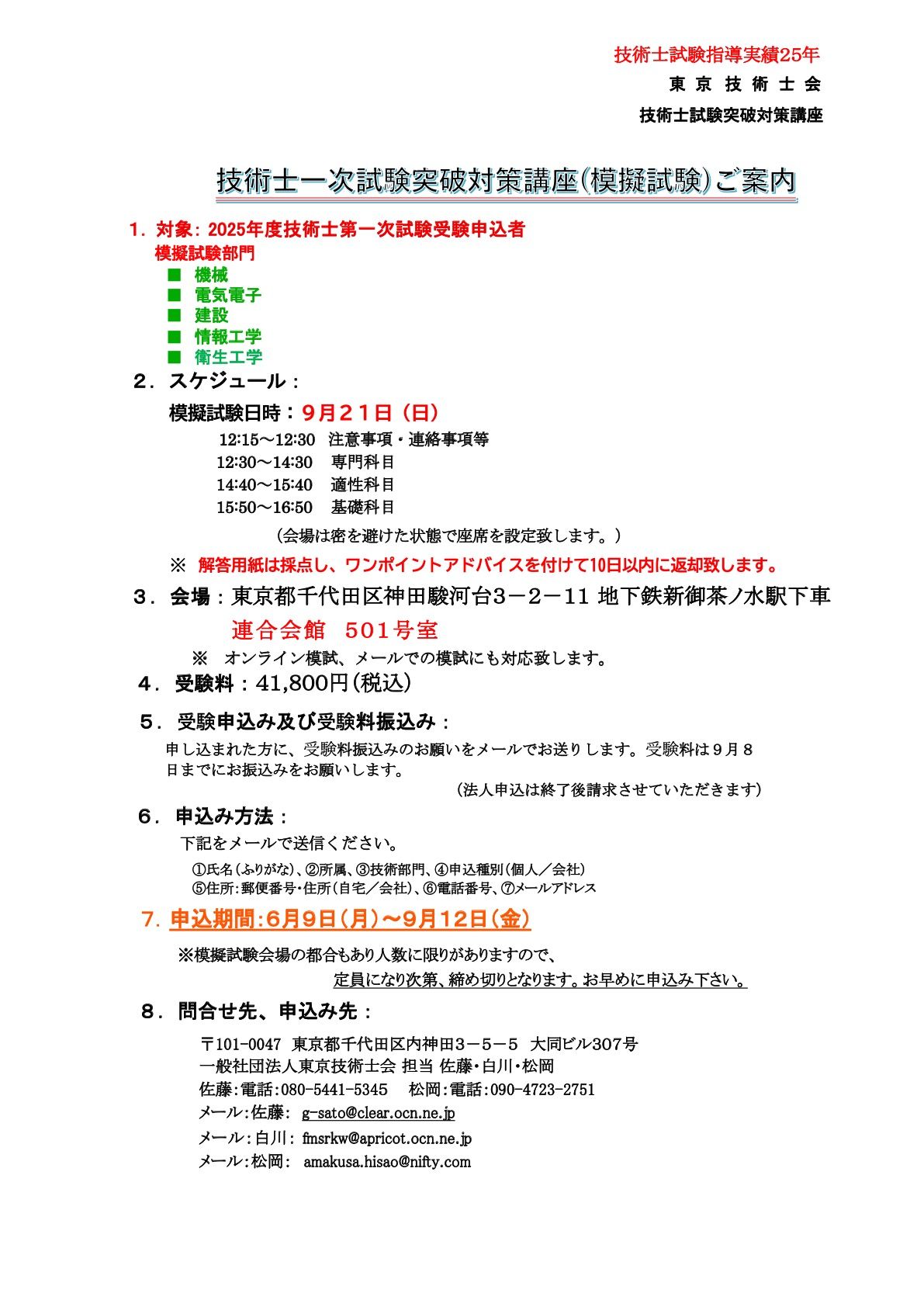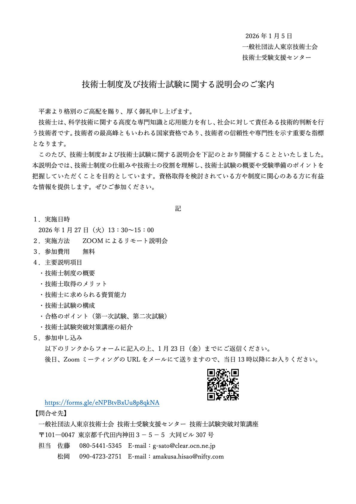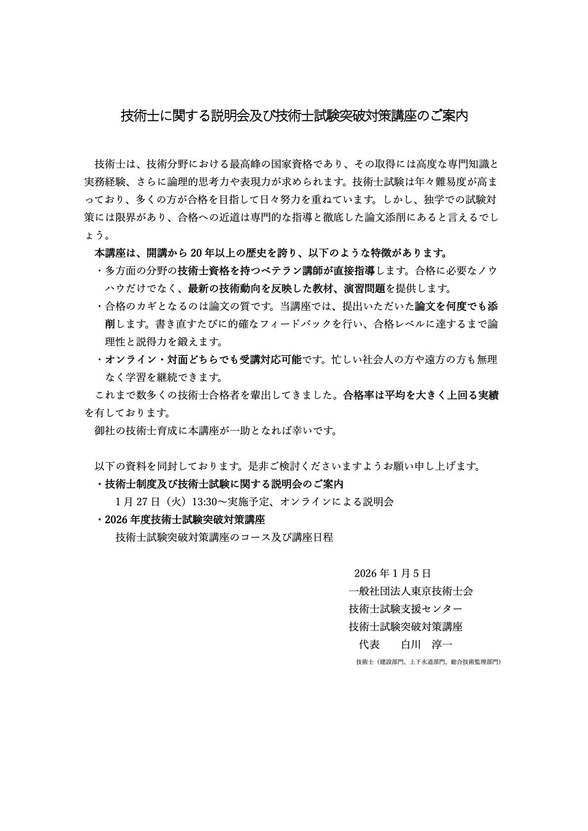 技術士に関する説明会及び技術士試験突破対策講座のご案内