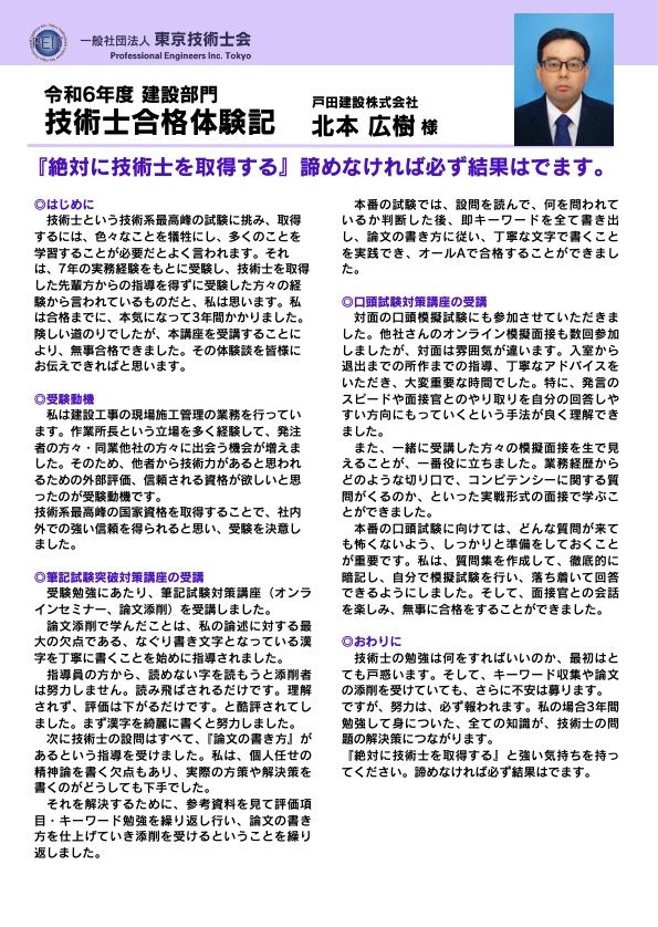 技術士合格体験記 北本様
