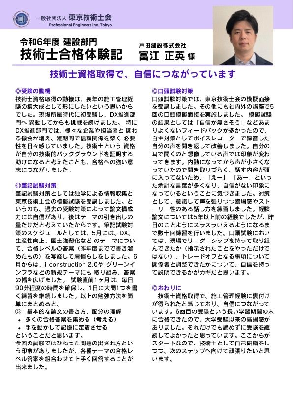 技術士合格体験記 富江様