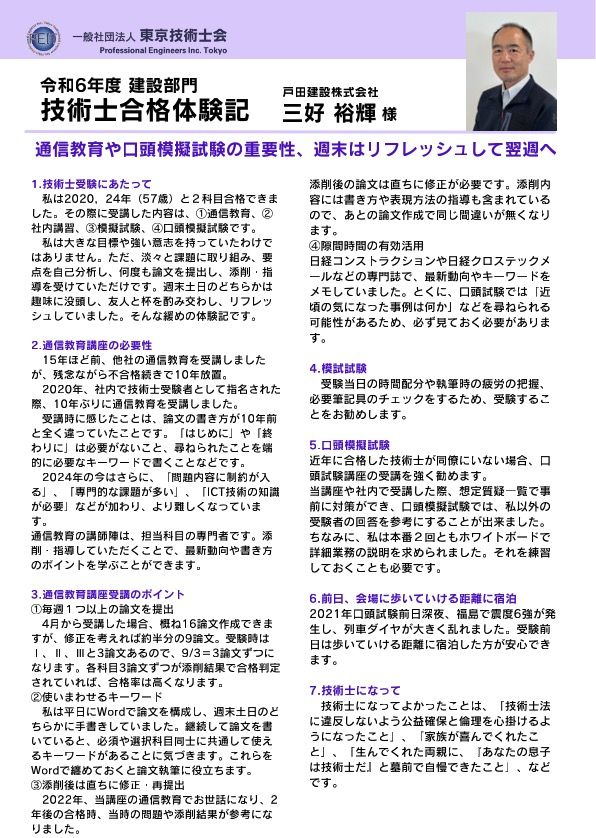 技術士合格体験記 三好様